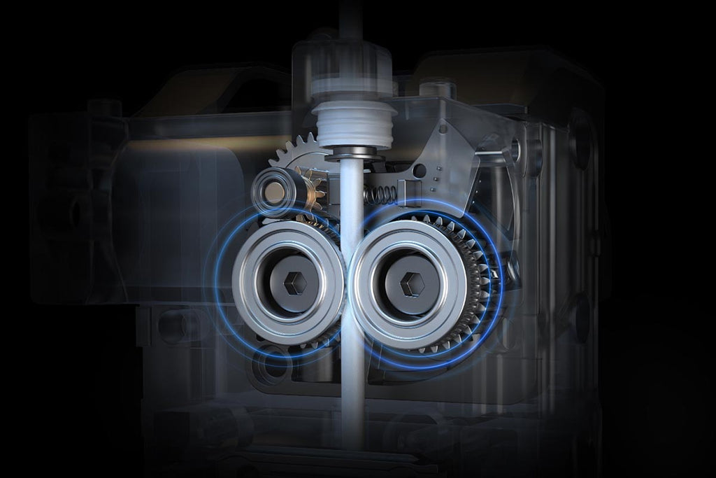 The all metal extruder is made of hard wearing metal to withstand wear from tough composite filaments such as carbon fiber composites. It is also capable of griping soft flexible materials such as TPU.