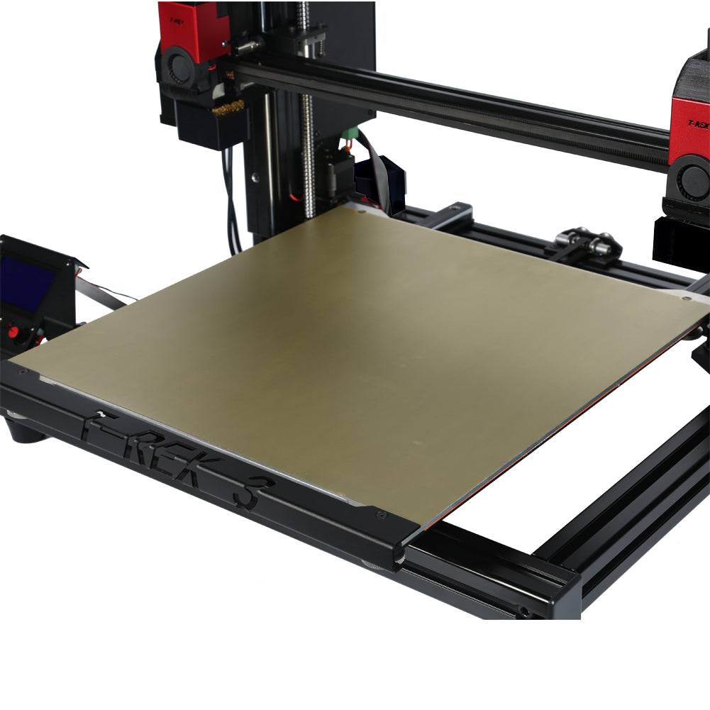 Upgraded from the Formbot T-Rex 2+, the T-Rex 3 has a higher temperature built in extruder, which uses a high temperature PTFE tube, that allows you to more easily print with a variety of materials, up to 350 degrees Celsius (or 623 degrees Kelvin if you want to feel special). The Formbot T-Rex 3 comes with a high quality PEI sheet for your bed adhesion, allowing you to get glass smooth base layers with the best adhesion method available.
