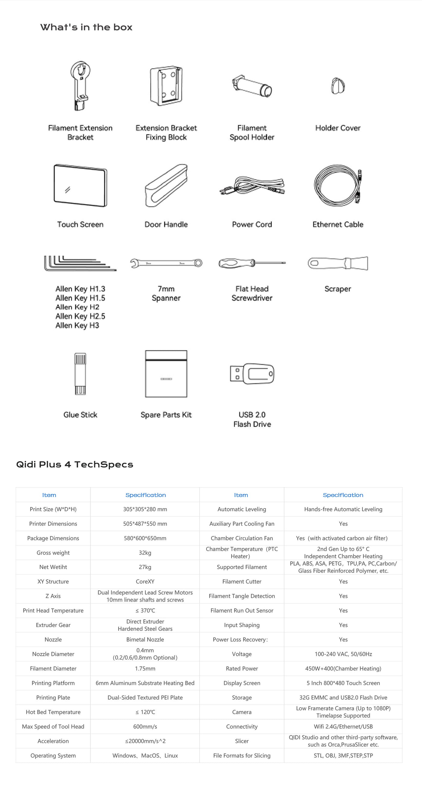 The QiDi Plus4 is a large format high speed Kipper firmware 3D printer boasting a massive 305x305x280mm build volume housed in an insulated active heated chamber reaching 65 degrees. The 80W hot end can can reach up to 370 degrees enabling this printer to print in high temperature, high strength carbon fiber materials such as PPS-CF producing exceptional surface quality warp free parts with professional results. This is the new King of 3D Printers